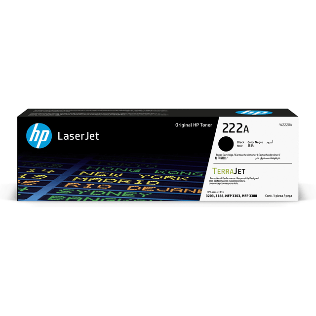 El tóner HP W2220A 222A negro original está diseñado para ofrecer impresiones nítidas y profesionales en su impresora HP LaserJet Pro 3303FDW. Fabricado por HP, garantiza rendimiento, compatibilidad perfecta y calidad superior en cada página.